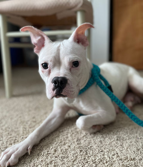 If there is another nice doggy sibling in the home, Flo would love to meet them. She really perks up and comes out of her shell as soon as another dog enters the room. She has a nice friendly approach with them, and we highly recommend another dog in her adoptive home to help with confidence building.